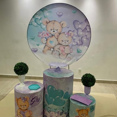 Também criamos kits maiores e personalizados, com itens extras como mesas, painéis, escadinhas, balões, tapetes e muito mais, tudo pensado para sua festa ficar perfeita.